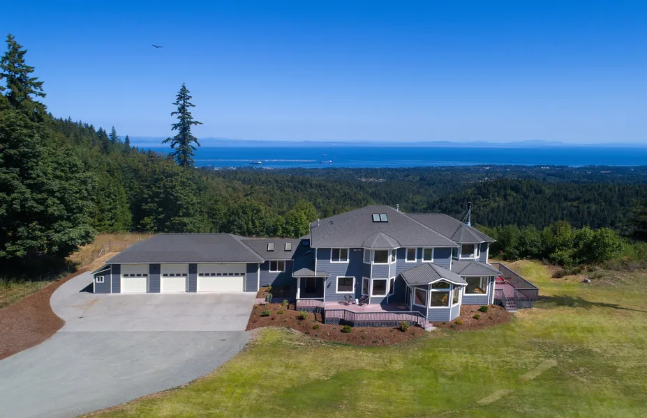 This serene 4-bedroom estate on 99 forested acres borders the Olympic National Park and is arguably the finest view property in the region that must be seen to be appreciated. Combining dramatic vistas of Hurricane Ridge with spectacular panoramic views of the Strait, Vancouver Island, the San Juan Islands and both the Canadian and U.S. Cascades. The floor plan was designed to maximize the views, flowing artfully with finishing touches respectful of the surrounding environment. Updates include refinished hardwood floors, new carpet and freshly painted interior with designer colors. The Chefs kitchen includes granite countertops, stainless steel appliances, custom red birch cabinets, a huge walk-in pantry and a large kitchen island. The open and airy living room includes a beautiful wood-burning fireplace and is accessed via French doors from the formal dining room. The dining room features the largest window in the home to take full advantage of the stunningly beautiful mountain view and has French doors leading to the deck. The upstairs Master Suite features stunning mountain and water views, a large walk-in closet and a spa-like Master Bath with radiant floor heat and a 2-person soaking tub. The downstairs adjoining offices are ideal for a work from home lifestyle and the exercise room features an endless pool, vaulted ceiling and a wall of windows that captures the jaw-dropping water view. Additional amenities include, 2 wells, a generator and a 4-car garage. The garage has 10 ft garage doors and the 4th garage bay is separate from the rest of garage and would make an ideal shop. This is an exceptionally rare opportunity to own a private retreat adjoining a National Park that is a UNESCO World Heritage site. Just minutes to town, this home offers the ultimate in tranquility while not being isolated. Only 2.5 hours from Seattle, yet a world away.