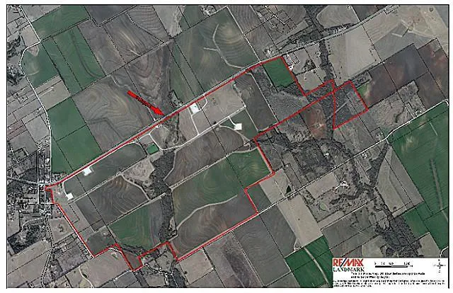 Excellent 1000 +- Acre Farm near Dallas! Features quality farming operation, good road system, fenced perimeter, normal crops incl. corn, wheat, milo. Farm is very versatile w. nice mix of cropland, pasture, and wooded areas. Could make excellent yearling operation, w. plenty of ponds for cattle. Updated 50s brick home, good older barns,& horse barn w. 8 stalls. 4 pipe cross fenced pastures approx 5 ac each for horses w. loafing sheds(need tin). No minerals available - severed.