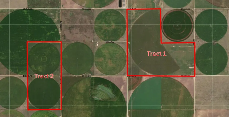 Excellent opportunity to add a highly productive irrigated farm in Texas County to your operation. Both tracts have convenient highway access and proximity to elevators. Each tract has one irrigation well with approximately 1,200 GPM. 67% irrigated acres to total acres.
