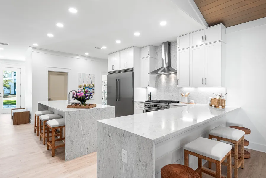 With five spacious bedrooms and four elegantly designed bathrooms, there’s ample space to host loved ones for coastal getaways or make this retreat your full-time sanctuary. Quartz countertops, hand-selected by designer Heather Fuller of Fuller Designs, add an air of sophistication, complementing the light-fil...