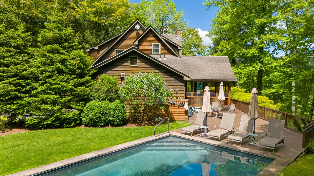 A Home Designed for Living and Retreat Nestled at the base of Tom Ball Mountain on over 10 private acres, 5 Easland Road is a custom-designed contemporary sanctuary where nature, luxury, and thoughtful craftsmanship come together in perfect harmony. This 5-bedroom, 5.5-bath home features soaring vaulted ceilings, dramatic walls of glass, and gleaming hardwood floors throughout. Each of the three upstairs corner bedrooms has its own private ensuite bath and scenic views. The main floor primary suite includes a spa-style bath and is fully handicap accessible. Unparalleled Outdoor Living The true magic lies outside: Over 100 ' Wraparound deck with immersive woodland views. Saltwater swimming pool / hot tub with outdoor shower.