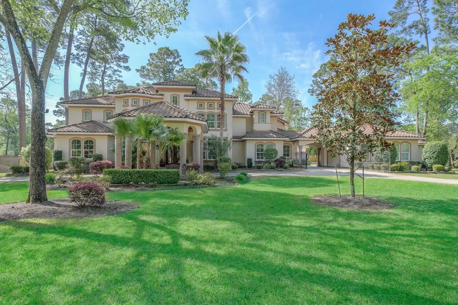 A magnificent Mediterranean estate with a spectacular Spanish flare. A beautiful custom home tucked away in Deer Ridge Estates. This 6194 sq. ft. home is situated on almost 1 acre of land. The circular drive is surrounded by beautiful landscaping and covered at the front entrance. Travertine flooring and granite counter tops flow throughout the entire home. Exquisite craftsmanship! The first floor flows nicely with 2 living spaces, 2 offices, and 2 bedrooms. Master overlooks the lush backyard and pool, in-suite luxury bath and his & her closets. 2nd bedroom located off the family room with in-suite bath. A unique floor plan upstairs with 2 bedrooms sharing a Jack & Jill bath with a study/flex space adjacent. 5th bedroom with in-suite bath, media/game room. The backyard paradise has a covered slate tile patio, saltwater pool, 1/2 bath & shower and summer kitchen. If that wasnt enough you have your very own sport court! NEVER FLOODED! Full House Generator. Water Well. Mosquito System