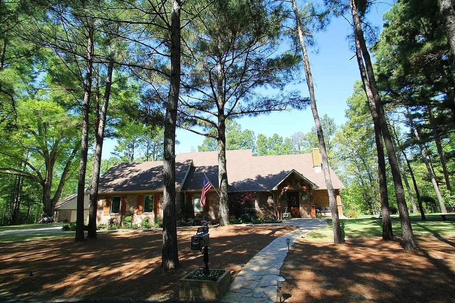 A perfect waterfront retreat. This home is a perfect retreat from the everyday demands of life. Whether this is your full time residence or just your weekend home, when you are here, you will find both privacy and tranquility. This home is located on over 5 wooded acres, on Lake Catherine, a 15 acre private lake. Here you will find peace and quiet nestled back in the woods. Lake Catherine is fully stocked with bass, crappie, catfish, blue gills and all of the other usual suspects. You can enjoy catching fish either right off of your dock or in your boat. How green is your thumb? Out here its pretty easy being a master gardener with rich, sandy loam soil and your own irrigation system where the water comes right out of the lake. If you enjoy being out in nature, then you will love it here. You can sit out on your deck and watch a huge variety of birds that come to this property. There are bald eagles, hawks, hummingbirds, Cardinals, Bluebirds, Blue Jays, Doves and Mockingbirds just to mention a few. You can also watch deer, fox, raccoons and other wildlife cut across your back yard on their way to the woods. Just as soon as you step inside this home you will immediately notice the quality of workmanship. It has an open floor plan, high cathedral ceilings with exposed engineered beams, lots of down lighting, ceiling fans and a wood burning stove that can heat up the entire living, kitchen and dining areas on those cold winter nights. The kitchen is wonderfully designed for entertaining. It has granite counters, a massive breakfast bar, a gas cook top, gorgeous wood vent-a-hood, stainless steel appliances, lighted walk-in pantry with built-ins and a dining area. You have an enclosed patio area that leads out to a wide open deck that overlooks the back yard and the lake. This home has one of the best utility rooms, with lots of storage, a sink, folding area, room for an extra refrigerator or freezer and a convenient shower right next to the garage so that you do not track all of the outdoors indoors. This home is almost 3300 sq feet with 4 bedrooms. Each bedroom has its own bathroom. Other amenities you will find in this home include a 10 foot, solid walnut front door, Pella triple pane windows with hidden blinds and beautiful crown molding can be found in most of the rooms. No money was spared on the insulation. Energy efficient foam insulation was used in this home and nowhere is it more evident than in the attic. When you have too many guests that have shown up, you can always put them in the guest house. It is trimmed out in rough cedar on the inside and has recessed lighting, ceiling fans, a kitchenette and bathroom. It has a fantastic covered porch looking out over the lake. The porch has cathedral ceilings trimmed out in bead board, recessed lighting, ceiling fans, flagstone steps and a gorgeous, dry stack, wood burning fireplace. With all of this, how could you not want this for your very own?