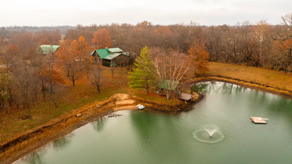 Welcome to your dream place! A beautifully crafted, custom log home on 38 +/- incredible acres sitting just outside of Humboldt in Allen County, Kansas. 3,600 square feet +/- with 4 large bedrooms, 3 full bathrooms, a bonus upstairs loft with a wet bar, and an oversized room downstairs that makes for a perfect game room or multi-kids bunk room. The main floor is highly decorated with a beautiful stone fireplace, vaulted ceilings, an antlered chandelier, and a spectacular kitchen and dining room. The back room off the kitchen is the rec room, with a nice hot tub, and game tables for fun entertaining. The master bedroom suite is spacious and boasts a nice walkout porch with perfect views of the pond. The huge gambrel roof barn matches the home and has two electric garage doors, a hay loft, a game cleaning area, a full bathroom, and lots of storage. The 1.5 acre pond is very clear and has a...