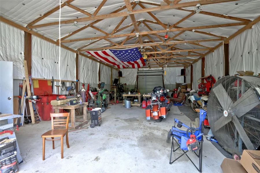 Outside, a private pool with plenty of open space for outdoor fun or business expansion. The 70x30 insulated workshop w/vehicle lift on a concrete slab & front & back roll-up doors w/ overhang.