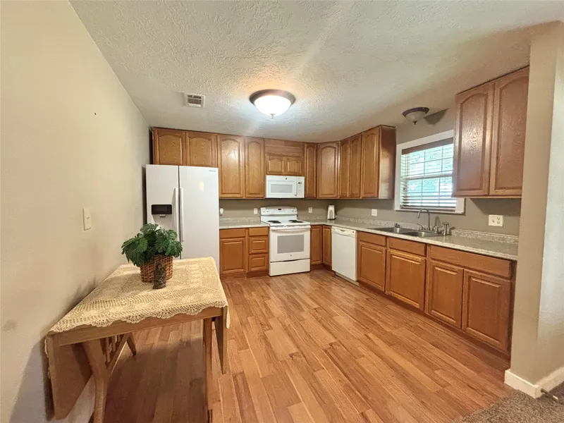 Charming 2-bedroom, 1.5-bath home on 1 acre down a quiet country road! Enjoy an open kitchen and family room, plus a nicely tiled walk-in shower. Front and back covered porches provide the perfect spots to relax and take in the views of the pecan orchard across the street or the gorgeous live oak tree in the back. A utility room off of the back porch includes a half bath for added convenience. Property features an attached 2-car carport, storage shed, and large auxiliary building—offering plenty of space for storage, hobbies, or a workshop. Roofing was recently updated as well as new skirting. Country charm and functionality all in one!