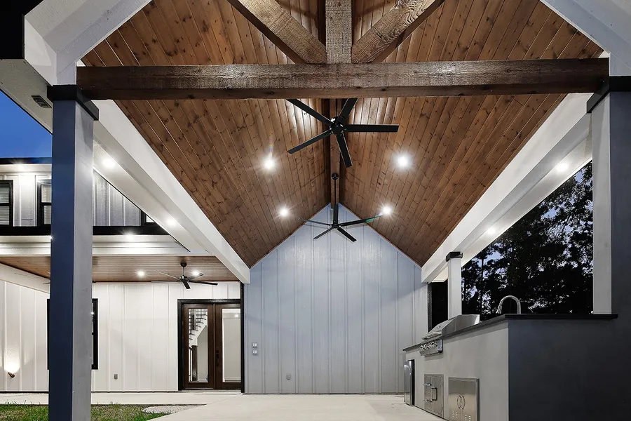 NEW CONSTRUCTION on unrestricted 1.4 acres! This custom 4 bedroom, 4 full/2 half bath home with office/study offers an open-concept layout that includes desirable upgrades, refined finishes & designer selections throughout. A welcoming front porch & double-doors lead to an impressive interior that sets the tone of the home. The family room with wood-beam cathedral ceilings flows seamlessly into the elegant kitchen with gorgeous quartz countertops, custom cabinetry, sleek appliances, an amazing walk-in pantry & light filled dining area. The main floor hosts the luxurious primary retreat with spa-like bathroom boasting an incredible closet, plus a convenient guest suite with private bathroom. Upstairs, enjoy 2 additional en-suite bedrooms & a spacious gameroom. Outdoor living shines with an oversized covered patio, outdoor kitchen, pool 1/2 bath, extensive exterior accent lighting & limitl...