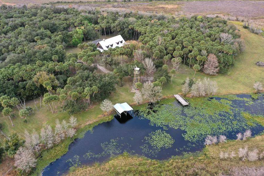 Just a few feet away from the lodge is a small pond with a well-kept dock and boat lift. Other amenities on the property include an airboat camp, 3,200 FT grass airstrip, horse barn, fenced horse pastures, multiple barns, and cow pens. Abington Ranch has all the amenities perfect for spending quality time with family and friends.