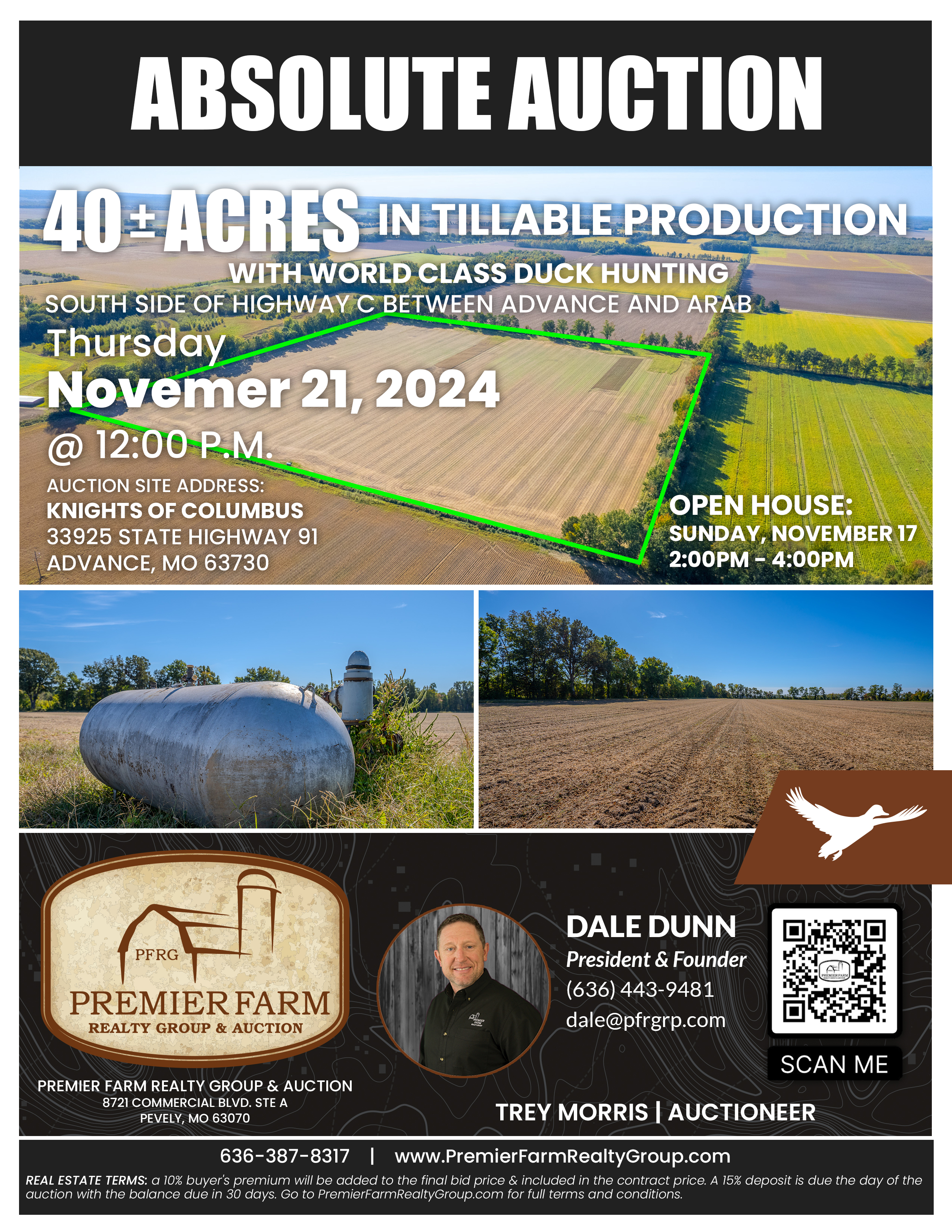 **a 10% buyer's premium will be added ot the final bid price & included in the contract price. A 15% deposit is due the day of the auction with the balance due in 30 days. See listing at the Premier Farm Realty Group website for full terms and conditions.
