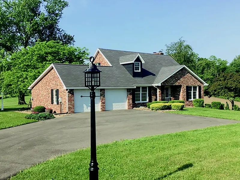 Absolute auction, all sells to the highest bidder on location: 60 acres total extremely rolling and scenic with fantastic country side views & sunset. Approx. 25 acres are high-tensile fenced pasture balance mostly all tillable. Good set of improvements. One-owner approx. 2,000-sq.-ft. brick Cape-Cod style home built by Chuck Kasparek main floor master bedroom, kitchen with custom cherry cabinets, family room w/ fireplace, dining room, laundry, rear porch and full bath on main level, 2 bedrooms & full bath up w/ tons of storage. Plaster walls. Good basement with rec room & fireplace, utility room, new modern gas boiler, plus new whole-house central air updated Anderson replacement windows - attached 2-car oversized garage new black-top drive. Picturesque bank barn with straw shed w/ horse and sheep stalls. Cut-stone foundation. Wagon shed with lean-to, etc. City water & sewer. Property meticulously maintained.