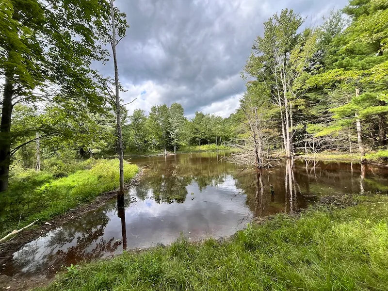 With a generous footprint and extensive road frontage, this adaptable piece of forest land allows many points of access and lots of recreational opportunities. It is a great hunting property or recreational retreat for those in pursuit of the sights and sounds that only nature can provide. Generally occupied by young forest, the wooded stand of oak, hickory maple, and beech, with some volunteer pines, is mixed throughout the entire flank. The east side of the property sports two spring-fed beaver ponds that hold water year-round and could potentially be expanded and stocked with the fish of your choice. ATV trails lead directly to the ponds and through the entire property for excellent access across the manageable topography. A hardwood ridge on the north end of the property has several rubs and scrapes and low brushy areas that hold deer and other game species. Connected to a larger blo...