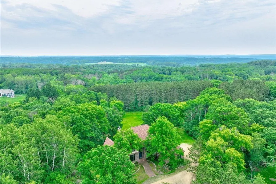 Escape to your 5 acre sanctuary with gorgeous wooded views, peace and privacy! Once a celebrated Parade of Homes model, this custom-built executive retreat marries soft contemporary design with the timeless charm of an English countryside manor. Step inside to be greeted by soaring 18-foot vaulted & beamed ceilings, walls of windows, and exquisite custom millwork showing craftsmanship in every corner. The main-level primary suite offers an escape of its own, with a spacious walk-in closet and serene views. A second junior suite with a private bath provides luxurious comfort for guests or family. Lose yourself in the magic of the home’s library, where a ladder leads you to a wall of books waiting to be explored. The heart of the home—the gourmet kitchen—features a rare AGA stove and copper-faced refrigerator & prep sink, while the Butler’s pantry and wet bar invite effortless entertaining. Sip morning coffee or unwind at dusk on the screen porch or on the private deck, surrounded by towering pines, wandering wildlife, and sweeping hilltop views. The walkout lower level offers a generous home office and the potential to create more finished space—unlocking both instant equity and room to grow. Loved by its original owner, this home is a masterpiece of warmth and wonder—waiting for your modern touches to bring the next chapter to life!