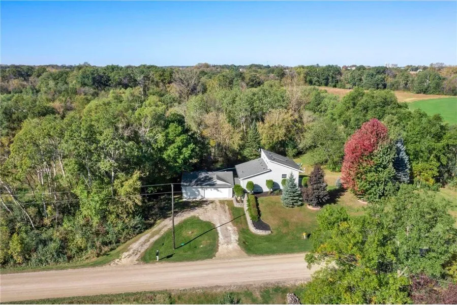 Welcome to your private retreat nestled on 2 beautiful rolling and wooded acres in desirable Northfield—just minutes from I-35 for an easy commute, yet a world away in peace and privacy. This charming and completely updated four-level home offers the perfect blend of modern living and rustic serenity. Step inside to a bright and open main floor featuring vaulted ceilings, large windows, and an eat-in kitchen with abundant counter space and cabinetry. The cozy living room flows seamlessly to a spacious deck, where you'll enjoy peaceful views of the pond and frequent visits from local wildlife. Upstairs, you’ll find two comfortable bedrooms and a full bath. The lower level includes a warm and inviting family room with windows that fill the space with natural light. The walkout leads to a tranquil backyard oasis—perfect for relaxing or entertaining. An attached, heated, and insulated garage adds both convenience and comfort. This property also includes a large pole barn for all your storage needs, a workshop-equipped shed with electricity, and a backup generator for peace of mind. Every detail reflects pride of ownership and thoughtful care.