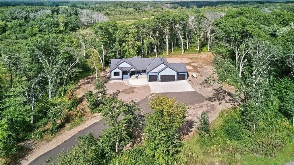 We are thrilled to introduce Betzler Builders' newest model home. This stunning, fully finished residence is nestled on 5.7 beautifully wooded acres and offers 3,704 square feet of thoughtfully designed living space, complemented by an impressive 4 Car 1,086 square foot heated garage with floor drains. The home features durable LP SmartSide siding all the way around, and the basement offers comfortable in-floor heating. The lower-level family room, complete with a wet bar, is perfect for entertaining. Throughout the home, you'll find elegant Marvin black windows, and the primary suite boasts a luxurious bath with a custom tile shower and freestanding tub. Additional features of this exceptional property include exquisite knotty woodwork, solid panel doors, Quartz countertops, a gas-burning fireplace, an electric fireplace, and a 14x14 three-season porch. The 14x12 cedar deck leads to a lower-level patio – ideal for a hot tub and entertaining – and the home also offers a spacious 152 square foot front porch and a fully irrigated yard. Don't miss this opportunity to own this remarkable home!