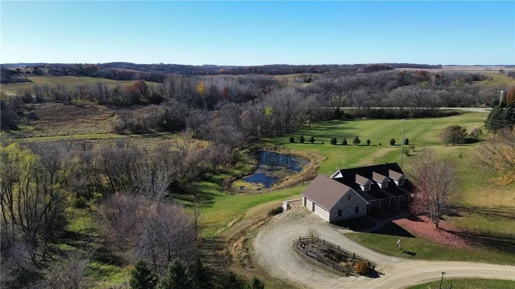 Experience country living at its finest in this stunning 5-bedroom, 4-bath walkout ranch set on over 4 peaceful acres with a private pond and breathtaking views. This home offers true main-floor living with solid hardwood floors, a spacious open layout, and a dedicated laundry/mudroom just off the garage. The private primary suite features a walk-in tile shower, soaking tub, and generous closet space for your retreat-style comfort. Enjoy in-floor heat with 4-zone controls throughout for year-round efficiency and comfort. The oversized attached garage includes a prestressed garage below, perfect for extra storage, a workshop, or your hobby space. Step outside to a massive deck and patio ideal for entertaining or soaking in the scenery. Whether you’re hosting gatherings or enjoying a quiet evening by the pond, this property offers the perfect blend of space, functionality, and tranquility.