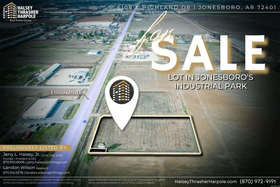 6108 E Highland presents a compelling investment opportunity in a prime location with mixed-use potential. Whether you aim to develop or hold the property for long-term appreciation, it offers a range of options to suit your investment objectives. Located in a high-traffic, this property is ideal for commercial and industrial purposes. The property is easily accessible from major highways and is nearby several amenities. It is conveniently located in Jonesboro’s Industrial Park, home to major national chain retailers and manufacturers. The property's zoning allows for a versatile range of development options. The property's location and zoning make it an attractive investment opportunity. The area has demonstrated consistent growth and demand, making it a favorable choice for investors seeking long-term returns. A thorough market analysis indicates that there is a demand for mixed-use properties in the area.