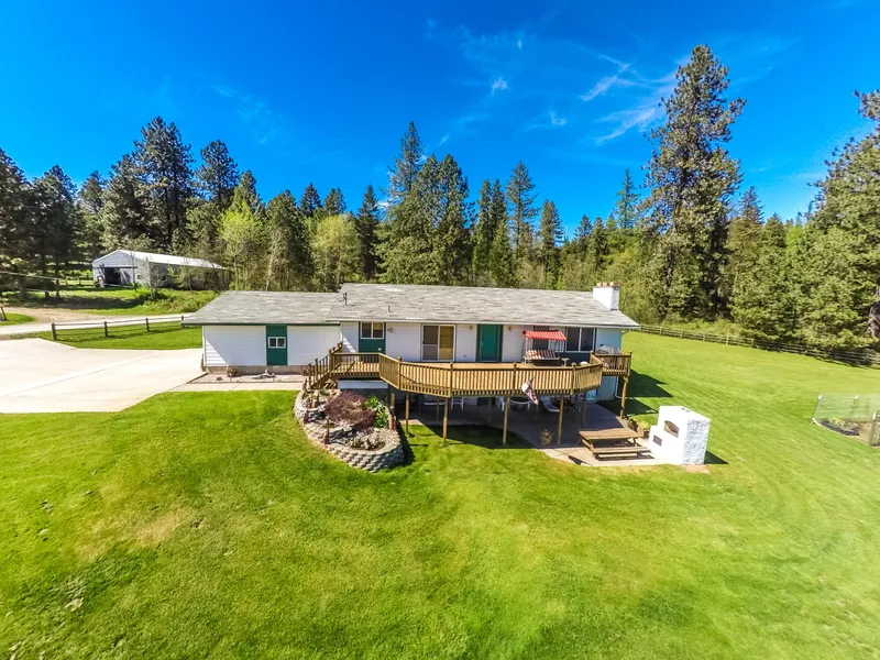 Extremely well maintained Acreage Property with Amazing Views! This Rancher Style home sits on almost 10 acres of fenced land, including a barn, chicken coop, fenced garden, root cellar, and fruit trees. Live the country lifestyle perfect for a horse set up! The home features a large deck and ground level patio. Inside is a wonderful open floor plan and newer appliances in the kitchen. 4 bedrooms and 1.75 bathrooms. Walk-out daylight basement. Basement has pluming for an extra bathroom if desired.