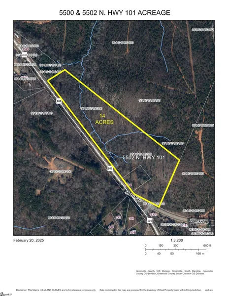 Over 1700 feet of road frontage at Hwy 101 North and Jordan Road in the beautiful and growing Blue Ridge area. Property has both level areas, rolling hills, and shallow valleys with a small creek. Existing house included on the property was previously a homestead and most recently a rental and can be renovated. Great location for retail commercial and residential development. Buyer will need to have separate tax map number established at Greenville County as larger 13-acre parcel is part of 50-acre parcel across Hwy 101 that is not included in this with this listing.