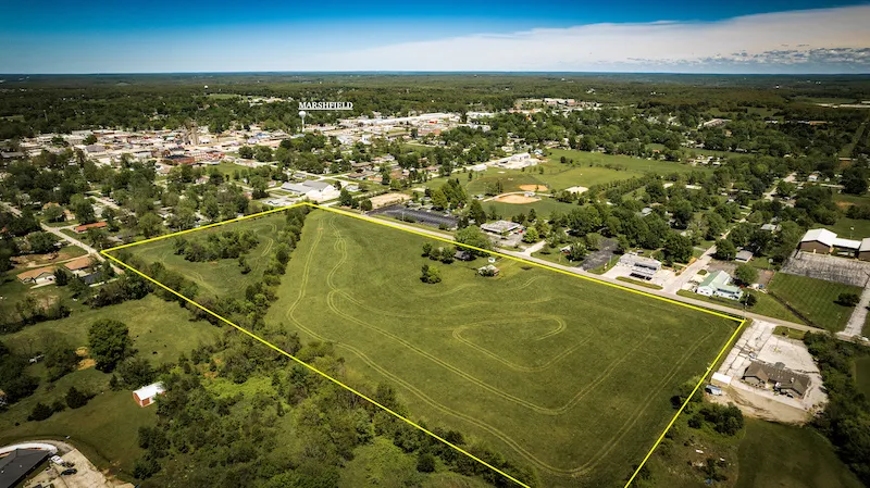 Welcome to an exclusive offering that represents the essence of prime real estate in Marshfield, Missouri. Situated directly across from the Marshfield Rotary Park, this expansive 20-acre estate stands as a testament to development value and potential. The property currently has rental income with a 14-year tenant in the house that can be continued if the next owner chooses. Boasting a quarter-mile stretch of road frontage zoned B-3 for General Business District, this property presents a wealth of possibilities, with B-3 designation accommodating a spectrum of commercial endeavors and R-1 zoning with city utilities on the remaining acreage. The improvements consist of a 2,182-square-foot brick residence crafted in 1965 complemented by a two-car attached garage and an auxiliary machine shed. Additionally, there are four situated entrances to the expansive and level terrain for great access. With the property's convenient access to major highways linking to Springfield, it serves as a gateway to expansive markets and opportunities, positioning the next owner for success in the growing community of Marshfield and beyond. Schedule your private viewing today and unlock the full potential of this exceptional offering in Marshfield City Limits with the Utecht Land Team.