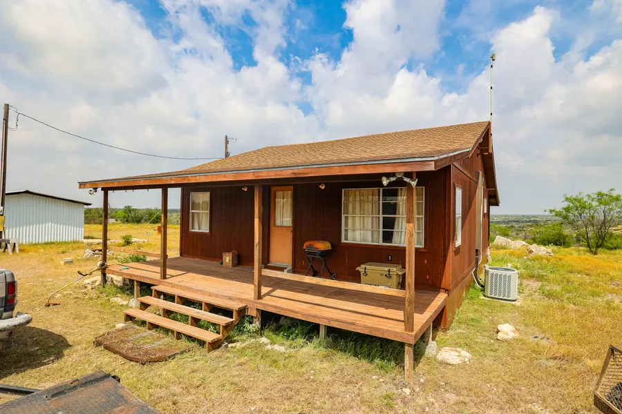 This remarkable property has it all House, Electricity and Private Water Well!!!! The home is one bedroom and one bathroom with covered front and back decks. The property is completely fenced with net wire fencing that is in good to average condition. There is also a metal barn which has the water well located in it. There is a water storage tank and trough on the property which provides water to the wildlife on the ranch. Several feeders and blinds will also be conveyed with the property.