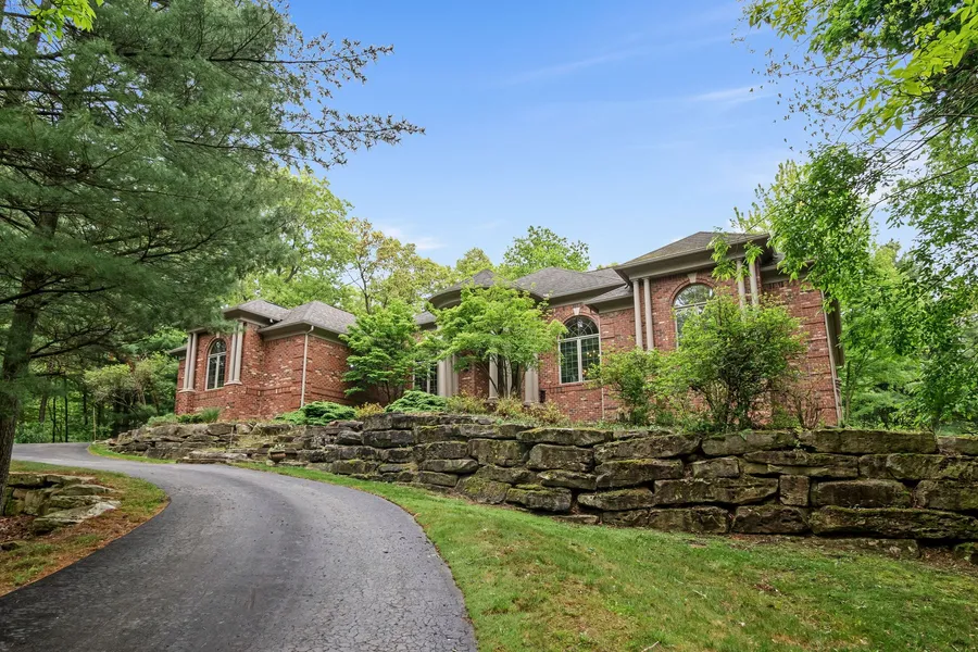 Stunning 3,439 sq ft custom-built ranch on 2.01 beautifully landscaped acres featuring 3 bedrooms, 2 full baths, and 3 half baths. This home showcases extraordinary craftsmanship, architectural detail, and high-end finishes throughout. A grand marble foyer opens to a spacious great room with hardwood floors, a gas fireplace, and expansive views of a serene waterfall leading to a stocked Goldfish Pond. The gourmet kitchen offers custom cabinetry, granite counters, stainless steel appliances including a GE Monogram gas range, Broan commercial hood, and a Cove dishwasher (2021). A formal dining room and custom library add elegance and character. The massive primary suite includes a two-way gas fireplace, sitting area, wet bar, two walk-in closets, and a spa-like bath with a jetted soaking tub, two vanities, designer shower, and separate dressing areas. Two additional bedrooms share a Jack & Jill bath. The walk-out lower level features high ceilings, is plumbed for an additional full bath, and offers ample storage. Additional highlights include a whole house generator, central vacuum, two furnaces (one new in 2021), two AC units, Ecobee smart thermostats with sensors, whole-home WiFi with ceiling-mounted access points, CAT6 ethernet wiring, Nest smart locks and detectors, monitored alarm system (2021), zoned speaker system with Denon HEOS amp, Lutron Caseta lighting, LED lighting throughout, and a new water heater (2025). Exterior features include a circular drive, 3-car garage with subpanel, greenhouse with water and electric, extensive stone and brick paver landscaping, and Unifi security cameras with video doorbell and DVR. Included appliances: refrigerator, stove, microwave (2024), dishwasher, LG washer/dryer (2021), trash compactor, bedroom mini fridge (2023), and bidet in the primary bath. Exclusions: countertop appliances, basement and butler’s pantry mini fridges, basement freezers, sauna, and interior security cameras.