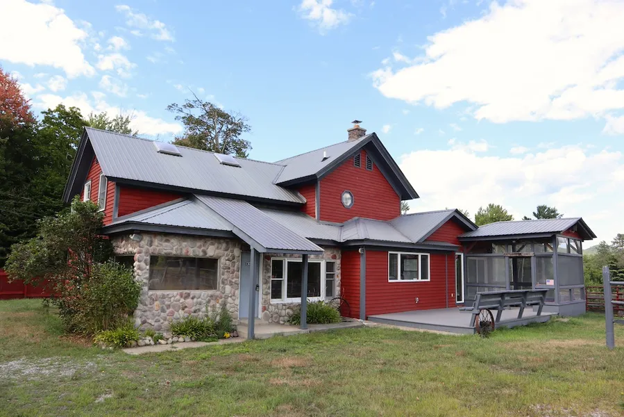 Overlooking a pond and rolling pastures sits this unique Adirondack Ranch featuring an updated 3-bedroom home, 2 barns and stunning views of the surrounding mountains. The open concept 3-bedroom, 2-bath home mixes rustic character with modern updates. The large kitchen and great room feature a cathedral ceiling, exposed beams, custom tile flooring and large windows with beautiful views. The unique custom live-edge countertop bar expands on the character with a reflection of the rugged character of the Adirondacks. The kitchen includes new stainless steel finish appliances. The first-floor primary suite includes a large sun porch and beautiful custom bathroom with river rock tile shower. Upstairs is a full bath with custom tile, 2 bedrooms and an office. Modern updates include an energy-efficient propane furnace, radiant in-floor heat, and a reinforced field stone foundation. The two 1800...