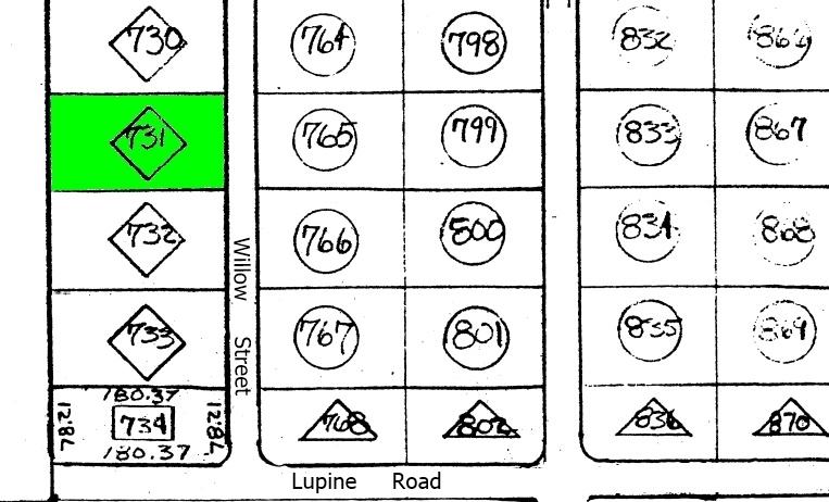 128 yards later the southeast corner of Lot 731 will be on your right.