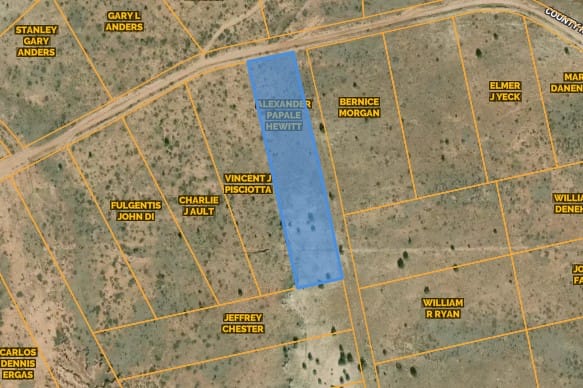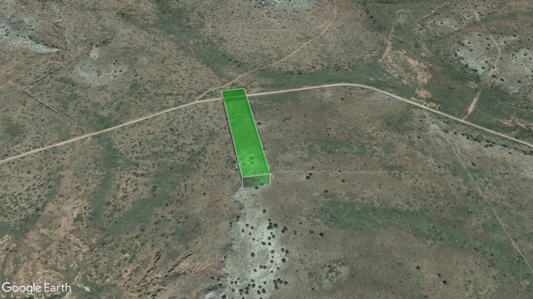 Coordinates: NW corner: 35.342, -104.3519 (ROAD) NE corner: 35.3421, -104.3513 (ROAD) SW corner: 35.3394, -104.3512 SE corner: 35.3395, -104.3506