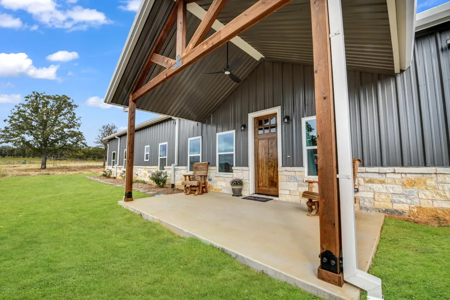 Dreaming of wide-open spaces and modern country charm? This incredible 15-acre AG exempt property has it all, whether you're raising horses or cattle, or just craving a little elbow room. The barndominium-style home offers 3 bedrooms, 2.5 baths, and a smart split floor plan designed with durability and comfort in mind. Concrete floors, spray foam insulation, and an engineered foundation ensure long-lasting quality. Peace of mind comes standard with a built-in storm shelter and a backup generator perfect for unpredictable Texas weather. You'll love the freedom of well water with a water softener system, keeping you self-sufficient and efficient. Need space to work or host? The 20x40 fully insulated shop is a showstopper, complete with a 50 amp RV hookup, full bath, and washer & dryer hookups ideal for guests, hobbies, or projects. The property is cross-fenced for livestock and includes an...