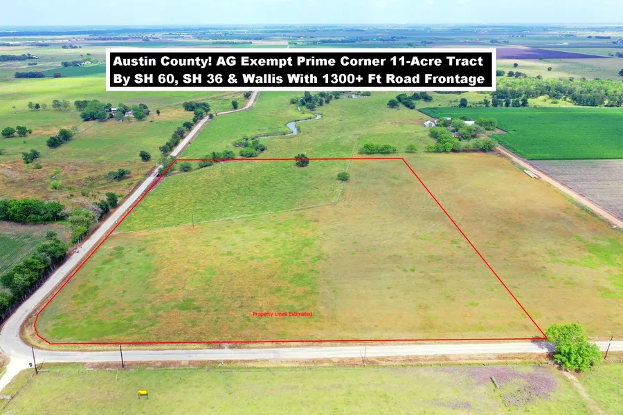 Great Location In Austin County! AG Exempt, Prime Corner ~11-Acre Tract By FM 1952, State Hwy 60, State Hwy 36 & Wallis With 1300+ Feet Road Frontage On Svoboda Road. 15 Minutes From 1-10 Provides an Easy 30-Mile Drive to SH 99/The Grand Pkwy, Katy Mills Mall, University of Houston-Katy Campus. No Water Or Sewer. Well & Septic Will Need To Be Installed By the Buyer. Seller To Retain All Owned Minerals. Five Additional Tracts Available (see map). New Survey Will Be Required. Restrictions in Docs. Downtown Houston and Texas Medical Center Are 45 Miles Away. Cattle on Property! Call Heidi to Schedule An Appointment at 832-657-4185! DO NOT Trespass Without An Appointment!