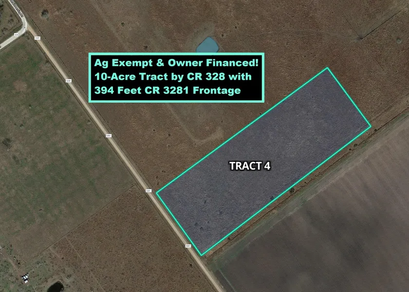 AG EXEMPT! Great Owner Financing Terms Available! 10.1-Acre Tract by CR 328 with 394.46 ft CR 3281 Frontage. Just a short 5-10 minute drive to excellent Industrial ISD schools & the Garcitas Creek/La Salle landing at FM 616. Property is located is in Jackson County ~7 miles SW of Vanderbilt, 28 miles SE of Victoria, 20 miles S of Edna, 30 miles N of Port Lavaca, 101 miles SW of Hwy 6 in Sugar Land & 120 miles SW of Downtown Houston. The property is partially-fenced pasture land in Zone X on the FEMA Map. The seller will be installing a culvert, water well & electric pole on the property. Per the seller, there are no deed restrictions and manufactured housing is acceptable, but buyer should verify. For the fishing fanatic, the property is 23 miles from the Texana Park Boat Ramp on Lake Texana for freshwater fishing. It is also 23.5 miles from the Point Comfort Boat Ramp and 27.5 miles from the Six Mile Beach Boat Ramp on Lavaca Bay. Additional Tracts Available For Sale! Survey in Docs!