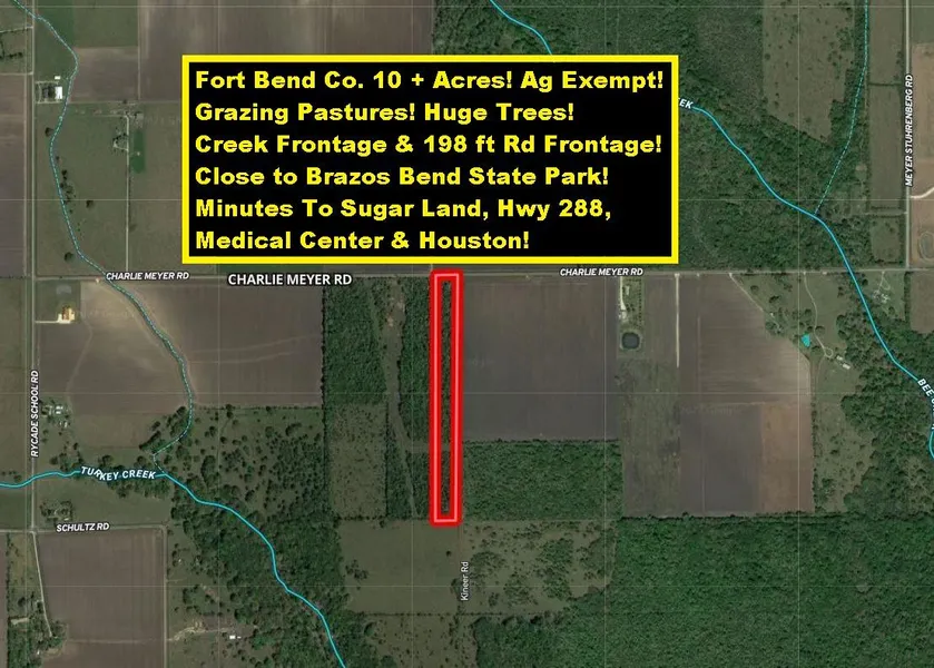 Must See To Believe! This 10.1051-Acre Tract Has It All! Ag Exemption! Grazing Pastures! Huge Trees! Creek Frontage! 198 ft Road Frontage! Located In Fast-Growing Fort Bend County! Close to Brazos Bend State Park! A Chance of a Lifetime To Own One Of The Most Beautiful Country Living Settings In The County! There Is Nothing Else Like It Minutes From Sugar Land, Hwy 288, Texas Medical Center & Downtown Houston. Minimal Restrictions (see Docs)! Call Agent For Details! Must Sell! Make An Offer! Adjacent 10.1051-Acre Tract Is Also For Sale Either Separately Or Combined For A Total Of 20.1 Acres! Call Agent For Appointment! Possible Owner Financing With Excellent Terms! Buyer Pays for Survey!