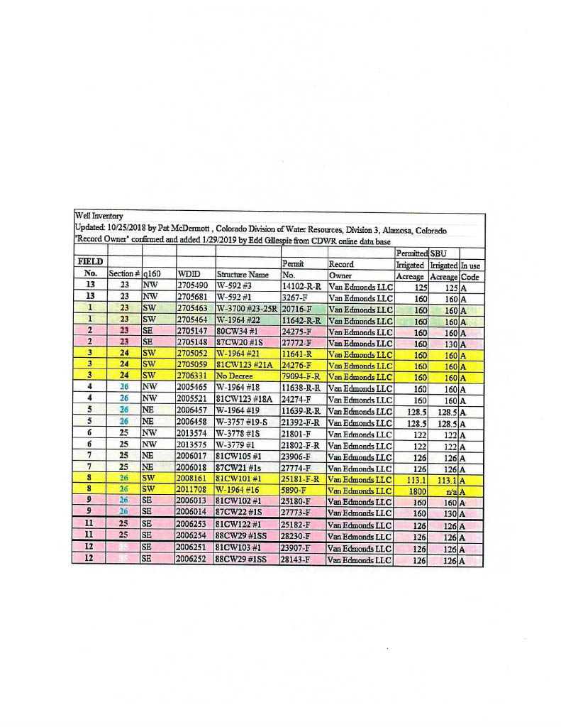 IRRIGATION WELLS: 25 irrigation wells. Each Pivot has two wells.