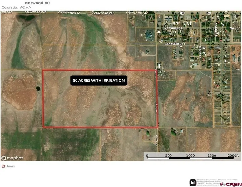 Todd R Schroedel, United Country Sneffels Realty, C: 970-318-2160, , Are you looking for a tremendous acreage that's perfect for livestock a mini ranch yet also ideal as a buy and hold? This parcel is just 1/4 mile south of Norwood on 42ZS road in an area perfect for future development. Utilities are nearby and the Town of Norwood touches the property to its east. The land is gently rolling and has some natural creeks and ponds. It's been used for livestock and hay in the past few years, and has been even been used as an elk ranch. There's an impressive center pivot located at the midpoint of its two 40 acre parcels, with gated pipe used to fill in the corners. Sound interesting? Norwood has become the reasonable, cost effective place for this region of Southwest Colorado. Drive around town and you'll see great examples of affordable housing, healthy commercial businesses and people who love the Norwood lifestyle. Live where you want to be! Outdoor activities abound--jeeping, fishing, hunting, hiking, biking, skiing--it's all here. The Telluride ski resort is only 45 minutes away-Ridgway, Ouray and Montrose are just a few minutes more.