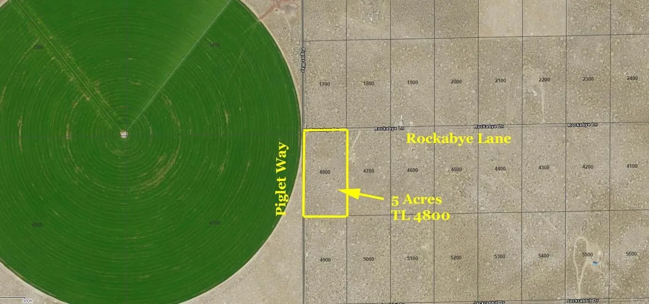 Very nice 5 Acres with power very close by.Situated nicely on the corner of Rockabye Lane X Piglet Way and overlooks the lovely hay fields and Big Game Wildlife eating the hay. Nice Packed Gravel and dirt road. Excellent homestead site, cabin site, tiny home location.Zoned A2 and in an area of similar homesteads, small farms/ranches. Farm animals welcomed.No owner carry.