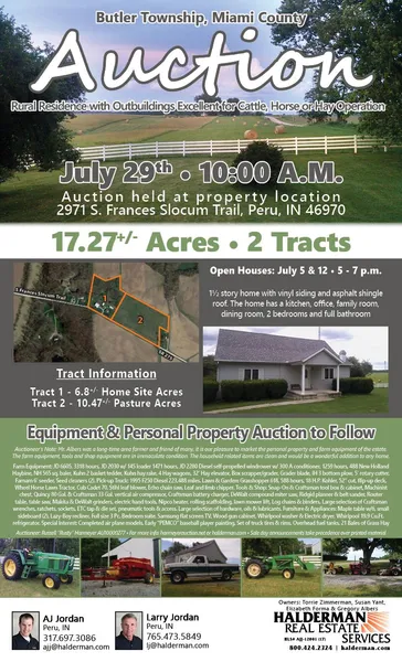 Auction Location: On Site: 2971 S Frances Slocum Trail, Peru, IN 46970