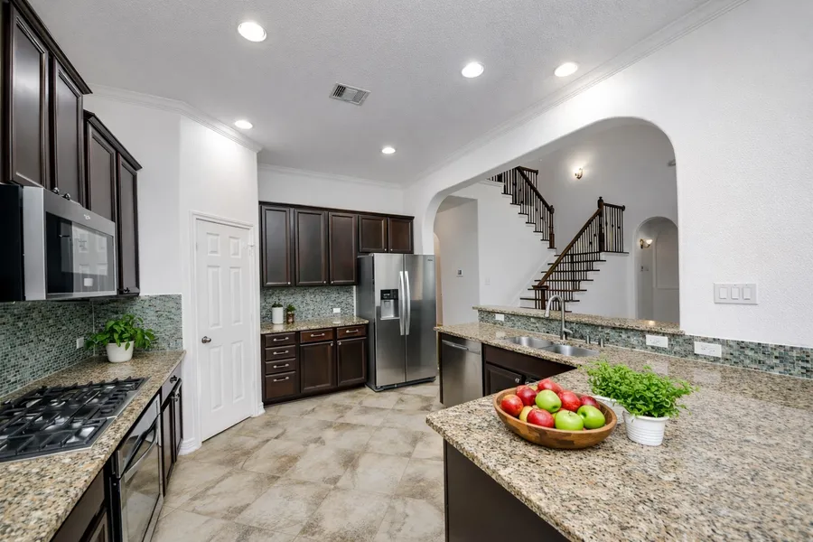 Welcome to 17106 Nitshill Lane, a standout two-story home in Aliana featuring a striking elevation with impressive curb appeal. Inside, the freshly painted 3,230 SqFt of living space offers 4 bedrooms, 3.5 baths, along with a dining room, home office, gameroom, & media room. The heart of the home is the family room, highlighted by a cozy fireplace, high ceilings, abundant natural light, an impressive wood-tread staircase & designer built-ins—ideal for everyday living. The open kitchen overlooks the family room & boasts granite countertops, SS appliances, breakfast bar & walk-in pantry. The extended primary suite offers a sitting area, soaking tub, separate shower, double sinks, & a large walk-in closet. Outside, a covered patio opens to a backyard with no rear neighbors, full sprinkler system along with the added peace of mind of a WHOLE-HOME GENERATOR. Zoned to Fort Bend ISD with quick ...