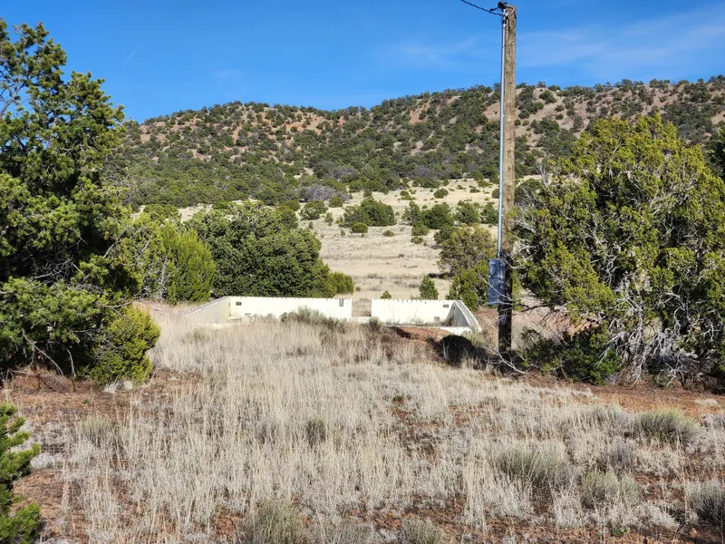 Rural Property For Sale in the Mountains of Pie Town, New Mexico. This property has it all: 200 amp electrical service, 2 bedroom permitted septic system, a well that is estimated to yield 10 gallons per minute, telephone land line, and, for privacy, it borders a ranch to the east. Property is fenced along the boundary with the ranch. A 30' x 40' stem wall has been installed for the start of a 1200 sf cabin. The property sits in Blue Hills Ranch Subdivision, a quiet subdivision with few covenants. Juniper trees and pinon trees dot the property. Broker Owned.
