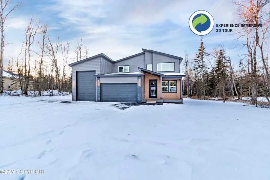 NEW Two-Story Shop Home - This amazing home boasts 1,757 SqFt of living space, situated in Wasilla city limits, with Lucille Lake nearby. Featuring a large attached heated 1,000+ SqFt garage, complete with a 42-foot RV/Boat bay, utility sink, floor drain & 220V(50amp) outlet to support an electric vehicle & welding work. Stunning modern interior with a gas fireplace, quartz counters, LVP flooring