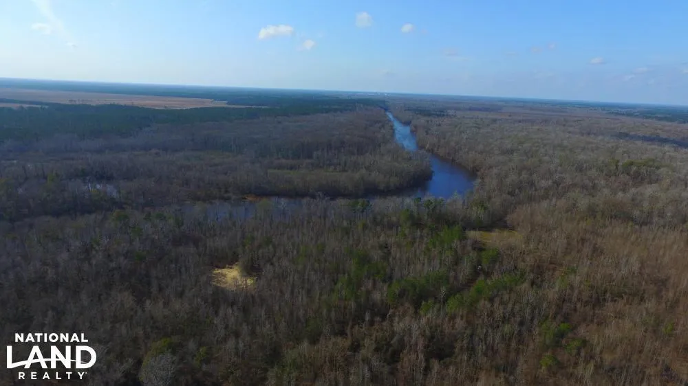 Alligator Point is seated at the confluence of the Cape Fear River and Lyon Creek. Boasting 514+/- acres with nearly 1.5 miles of water frontage, Alligator Point offers incredible hunting and fishing opportunities. With 5,700' on Lyon Creek and 1,700' on the river, there are multiple areas for duck blinds, boat docks, or even a cabin! There are 140+ acres of "Upland" that consists of 20 year old ready-to-be thinned pine, 90+ acres of which is plantation. Between the upland and hardwood bottom, there is a slough that could be utilized to build a duck impoundment. Positioned on the point is a 1/2 acre cabin site resting high on a bluff commanding the intersecting waters of Lyon Creek and the Cape Fear River, the only river in NC that flows directly into the Atlantic Ocean! By boat, Alligator Point is 18 miles up river from Downtown Wilmington. By car, less than an hour from Wilmington....
