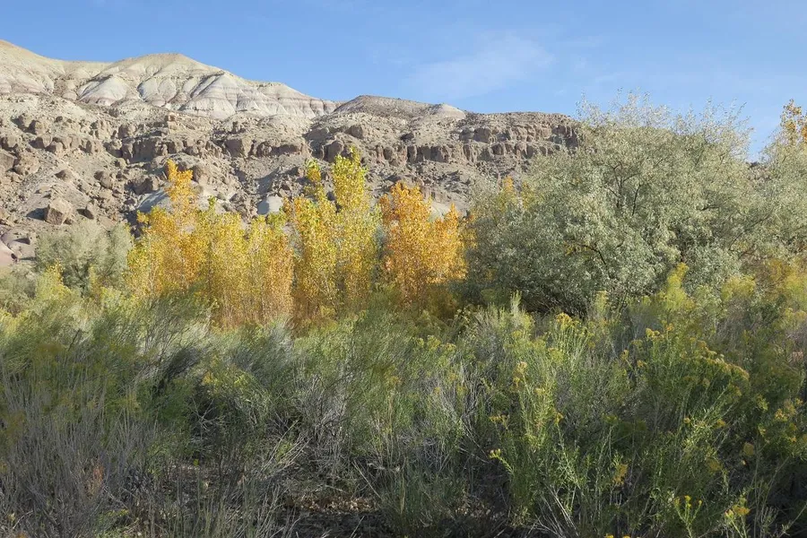 120 Acres along Highway 24 and the Fremont River one and a half miles east of Capitol Reef National Park. An L-shaped parcel with highway frontage, the river, hills, cottonwood trees and good camping spots. Development potential. This is the nearest land to the east boundary of Capitol Reef.