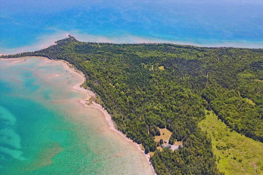 Few places in the world rival your own Lake Huron waterfront peninsula. SUNUP Lodge is just that retreat. Come indulge in the epitome of a custom crafted hunting lodge in Alpena, MI. A rare opportunity exists for someone who wants seclusion and privacy that seamlessly blends functionality and artistry with a newer custom construction. A voluminous open layout made for entertaining, relaxing after a long cold day in the woods hunting, fishing or swimming/boating, in Lake Huron; or just reading next to the custom crafted stone fireplace. This private peninsula includes 710 acres with 18,480 linear feet on Lake Huron and 3.5 miles of shoreline. Fifteen miles of drivable trails and roads. PURE MICHIGAN doesn’t begin to get better than this. A generous sized kitchen complete with a 5 gas burner stovetop and oven. Plus, an extra electric range oven conveniently located in the laundry room. A Great Room which spans the kitchen space and is large enough to accommodate 100 people at a time. This great room is 34 x 32 complete with the large stone fireplace and a real tree log for the mantel. There is a gorgeous water view, front and center, when opening the French door from the front vestibule. Unique to this home is the knotty pine paneling both on the walls and ceilings throughout the whole home. Pinch yourself, the whole house floors are radiant heat. Standout details carefully selected, and quality crafted with superior craftsmanship. Five bedrooms (one is primary), and three full bathrooms plus the essential pet shower conveniently located in the laundry room. Again, detailed in knotty pine and all radiant heated flooring. Observe along your tour are the built-in clothing racks with cubbies in several rooms where needed. Onsite includes a 40 x 40 metal pole barn, 1600 sq feet, which holds the essentials for maintaining this site with a Kuboto tractor, excavator, a 4 x 4, and other machinery. Also, solar panels, whole house 12K generator, four car carport for trailers, shed, propane and gasoline tanks, 15 hunting blinds, and a lovely patio with log seating overlooking the water. This property is privately owned with minimum usage each year and has been maintained by a professional maintenance person. All measurements are approximate. Pre-qualified buyers and proof of funds required before appointments are confirmed. Four Parcel ID’s are included in the sale: 01600100010000,01600100025100, 01403600000100, and 0160060004000. BATVAI.
