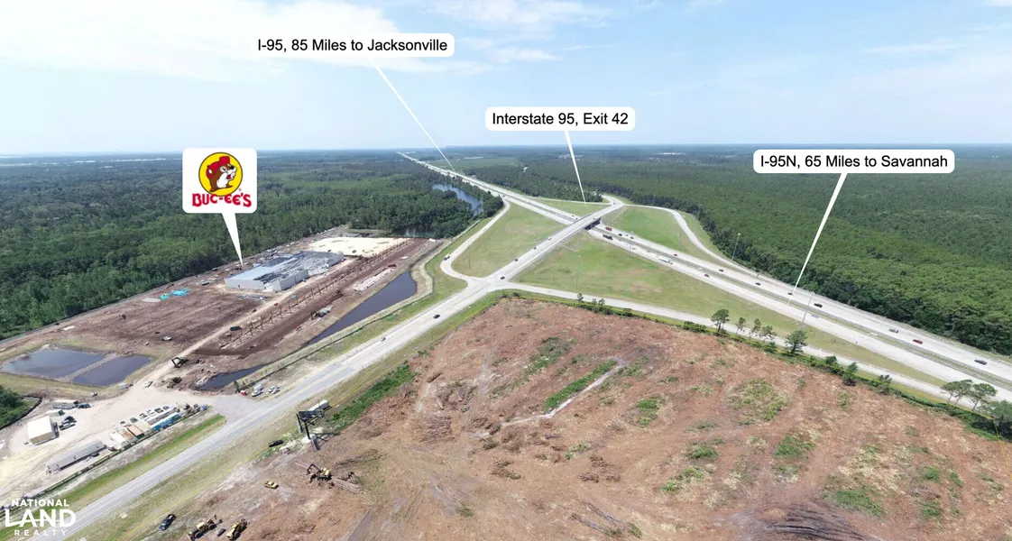This prime commercial site with significant interstate and highway frontage is located directly across from Buc-ee's. This site sits directly across Highway 99 from the new Buc-ee's that is currently under contract and set for opening first quarter of 2025. It is conveniently located between Jacksonville, Florida, and Savannah, Georgia. This interchange is on a path to significant growth in the immediate future and is very close to convenient shopping and retail in the Brunswick area. Glynn County/GDOT is funding a major upgrade to the frontage road as well as adding roundabouts. All utilities at site. Seller will have all sites cleared and graded. Additional sites available.