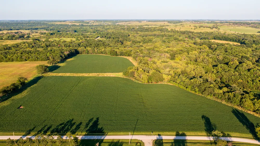 You couldn't draw up a more perfect build site close to Lawrence! Located 1.5 miles off blacktop in western Douglas County, Kansas sits this dreamy 30 +/- acres. This property has a combination of beautiful farmland (planted in soybeans), big hardwood oak & hickory timber, grassy draws, and is 100% loaded with wildlife. A beautiful flat build site sits on the north end of the property, with access to rural water and electricity right at the road. Your backyard adjoins over 1,200 acres of Clinton Lakes Wildlife Management Area and is just a few hundred yards from the Rock Creek arm of the lake. This property will never have any neighbors behind you, making it a magical place to build your forever home. Several bucks over 170"+ have been harvested on neighboring properties, and the turkey population is thriving in the region. You will see wildlife daily on this property. Call today for your showing!