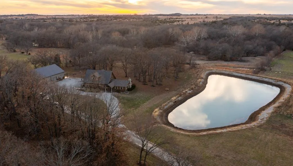 Here is a gorgeous custom home on 30 +/- acres just south of Garnett, right off blacktop Highway 169 in Anderson County, Kansas. This property screams character and a laid-back country vibe and is very close to conveniences. 2,700 square feet of incredible living space, 4 bed 2 bath, with a beautiful open concept and high-end finishes. A lodge-style feel across the entire property with a large clean pond and views off the deck overlooking the stunning Bradshaw Creek bottom. Complete with a 40'x60' shop, large overhead doors, and 1,200 square feet is finished out as an immaculate man cave/guest cabin, currently being used as a highly productive short-term rental. The owners have 12 months of previous rental history, with income exceeding $23,000/year in 161 nights rented, that's a $145/night avg. You can practically pay your mortgage with the rental! The hunting on the property is second ...