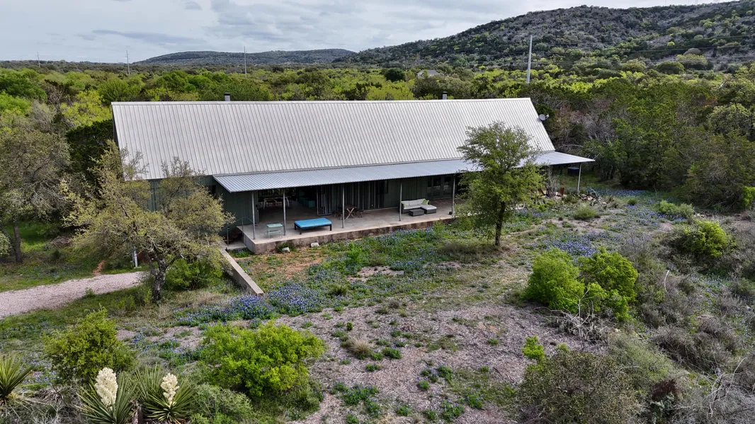 Designed by the UT School of Architecture Design + Build program, this one of a kind house offers stunning features and a smart layout. Enjoy 10 acres of quiet and solitude at this lovely luxury bunkhouse near Lake LBJ. The house, a 3 bedroom, 2 bath, sits in the middle of the 10 acre property. Relax in the main great room which has massive cathedral ceilings and natural light coming from every direction. Or, enjoy the built in library in the sun-soaked reading nook. The primary suite is a tranquil retreat entirely separate from the rest of the home. There is a large lofted room with reading area and a private balcony with seating for two. The en-suite master bathroom features a tub/shower combination, double vanity, and a bidet. The second bedroom, in the main house, has private access to a balcony with an open-air outdoor shower. Its adjacent to the guest bathroom on the main floor wh...