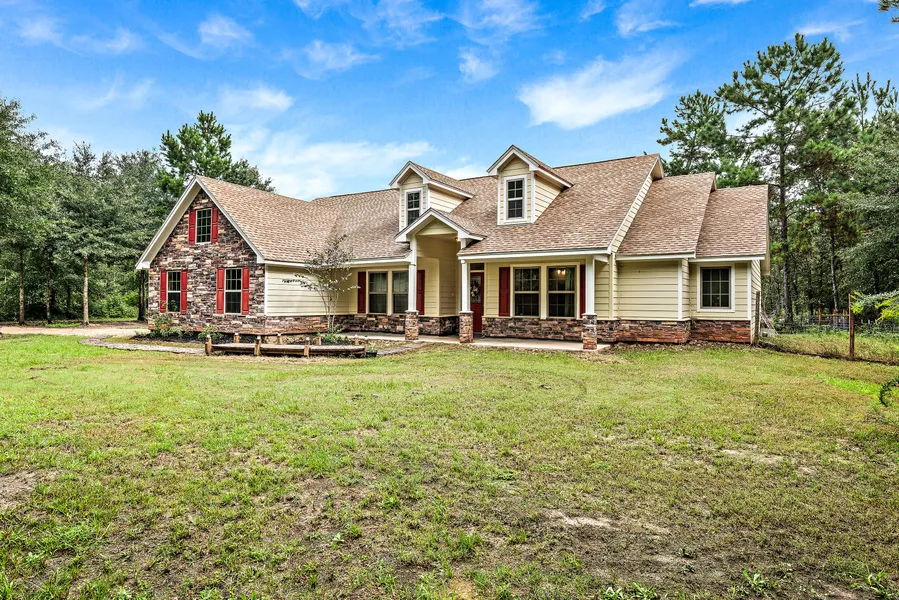 AMAZING COUNTRY SETTING! BEAUTIFUL HOME, ONLY TWO YEARS YOUNG, ON OVER 10 ACRES IN SOUGHT AFTER PEACH CREEK PLANTATION! THE HOME IS A GORGEOUS 3+ BEDROOM ONE-STORY, BOASTING AN OPEN FLOOR PLAN, THAT INCLUDES A LARGE LIVING AREA, GOURMET KITCHEN WITH GRANITE COUNTERS, STAINLESS STEEL APPLIANCES, AND BREAKFAST BAR, SPACIOUS MASTER SUITE, MASTER BATH WITH HIS/HER SINKS PLUS SEPARATE TUB & WALK IN SHOWER, SPLIT BEDROOM FLOORPLAN, STUDY WITH HALF BATH THAT COULD BE A FOURTH BEDROOM, INSIDE UTILITY WITH WASH BASIN, TWO CAR GARAGE, AND RELAXING FRONT AND BACK PORCHES! THE PROPERTY IS MAINLY WOODED, FOR YOUR PRIVACY, WITH A FENCED IN AREA FOR LIVESTOCK AND IS HIGH AND DRY WITH NO FLOODING ISSUES! THE TOPOGRAPHY SEEMS TO BE VERY LEVEL, MAKING THE LOT EXTREMELY USABLE FROM FRONT TO BACK! ENJOY THE PEACE AND QUIET OF COUNTRY LIVING IN THIS AMAZING SUBDIVISION WITH PARKS, LAKES FOR FISHING, CAMPING, AND MORE!