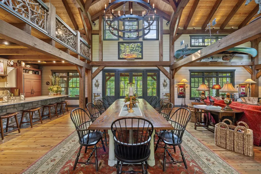 A stunning luxury timber frame construction home. Built for practical living and designed for entertaining. Detail-specific durable finishes throughout, including abundant wood and stone without any drywall. Antique heart pine flooring was reclaimed from a local mill and is run throughout the home.
