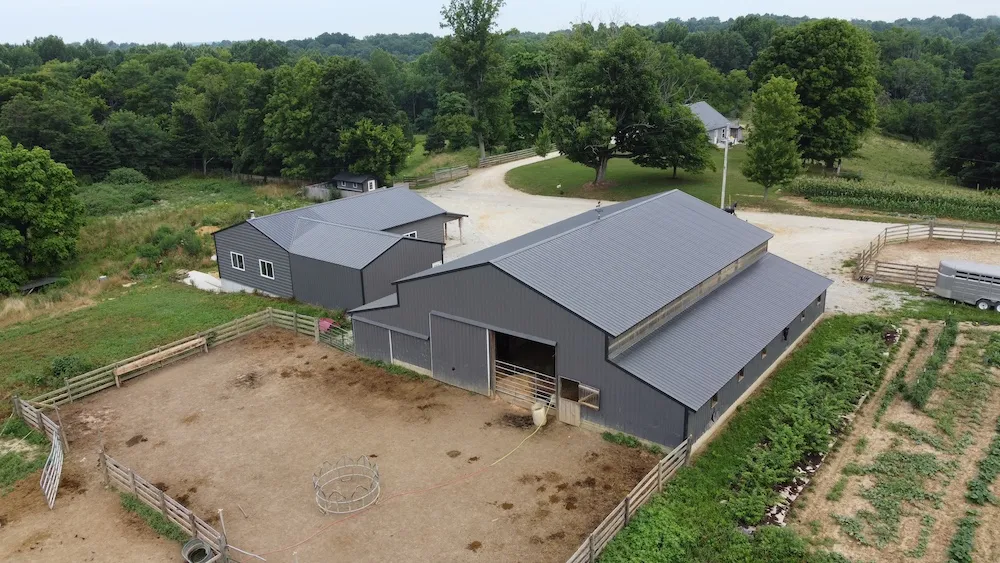 Exciting opportunity at a newer Amish-built horse facility and acres of recreational land! This awesome property features modern Amish construction, all built within the past 5 years. Situated on the south side of 1000 N is approximately 9.4 acres. This parcel features a newer 60 x 64 horse barn with 12 stalls, a tack shop, and a separate 30 x 50 building currently used as a storefront. Behind the stables are pasture and hay fields to conveniently let the horses feed. Across the road lies the larger parcel of approximately 80 acres, featuring a 32 x 20 Amish home, shed, and a historic barn constructed with large timber. There is a deep pond and flowing stream on this side as well. The wooded acreage offers both harvestable timber and exceptional wildlife habitat, with a diverse landscape of cedars, hardwood, thickets, hilltops, and wide open trails. While there is currently no electricity on the property, it is readily available at the road, just a few feet away from the stables and shop. Municipal water is accessible at the house and barns, with some spigots for farm work. There is also a cistern under the house. The shop building doubles as a store and features an open storage area with a concrete loading ramp for feed, hay, and other supplies. All equipment, furniture, ovens, stoves, and supplies are not included with the property. A great opportunity for equestrian endeavors or a recreational retreat.