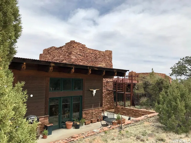 Not only are the surroundings and the views of this home inspirational, the design and structure are extraordinary. The 3000 square foot studio/shop with 16 feet high ceilings is an ideal place for creativity and expression. It can accommodate canvases, metal or wood sculptures of any size, and has many of the extras that make a productive and innovative studio. The studio is attached to the four-bedroom, three bath home with two levels. There are two roof decks to view the incredible landscape of mountains and canyons on the Colorado Plateau. The exterior is comprised of meticulously laid red sandstone accented with premium timber beams. The property is a 20-acre parcel that is part of Black Boulder Mesa, an exceptional development designed for privacy and maximum views. Another building is allowed on the lot. Water is provided by a private water system with each owner having their own water right. This is an excellent opportunity to own a unique, superbly crafted, custom built home in the midst of one of Southern Utah's most beautiful places. 2360 E. Broken Branch Drive, Boulder, Utah.